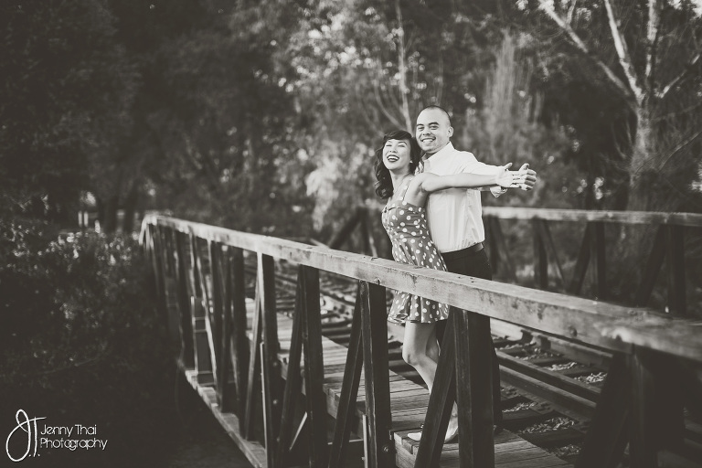 I relied on the “Like” button as a voting mechanism so at times things got competitive up til the last minutes. This year, I wanted to give two winners a shoot and make it more relaxed. I threw a random draw contest on my Facebook and placed the voting contest on my new Instagram (Follow me @jennythaiphotography). People were allowed to enter either or both. The winner on Instagram was Voleake and Danny! I remember they were head to head with second place. But to my surprise, I randomly drew second place out of a basket as my Facebook winner (proof video was posted on Facebook)! I messaged Emily and Simpson and they went from bummed out to ecstatic! Its just crazy how things work out. Thank you to everyone who entered this year! I will be posting both winner’s photoshoots. This is Emily and Simpon’s adorable vintage park shoot, enjoy!