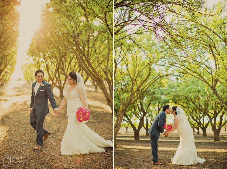 I’m so excited to show this beautiful wedding I shot in Kingsburg, CA. It was a warm, sunny day in the Valley. The Tuscan Gardens was so rustic romantic with their endless rows of blossoms, vineyards and trees. Rose also did an amazing job picking out the colors combinations for this one. Everything just came together perfectly, cheers to these sweet loving Newly Weds!