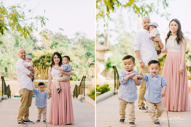 It always hits me whenever a Bride and Groom I’ve photographed in the past come back with babies! When Linda and Charlie flew back to San Diego with 3 adorable boys for a portrait update, I couldn’t be more honored. We couldn’t think of a better place than the classic Balboa Park for their session. It was a great balance between architecture, history, and greenery. After all the rain we’ve been getting this year, everything was in full bloom for the sweet family!